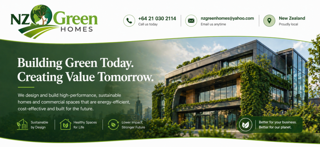 Backed by an experienced network of professionals and contractors, NZ Green Homes creates tailored, world-class solutions aligned with modern sustainability standards shaping the future of environmentally responsible commercial design.